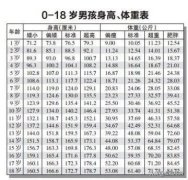 0-18岁儿童(男、女)身高体重标准表